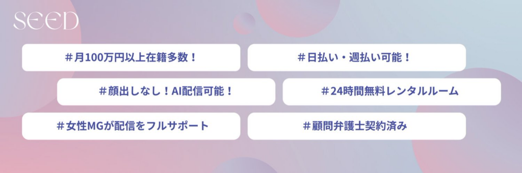 しかし、もしご自宅での配信が可能であれば、Fannall、SEED、AZUといった事務所で「在宅契約」をした方が、圧倒的に高い報酬率(還元率)を得られます。