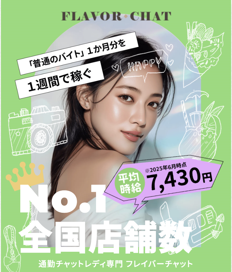 フレイバーチャットは、平均時給7000円越えのライブチャット事務所です。