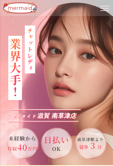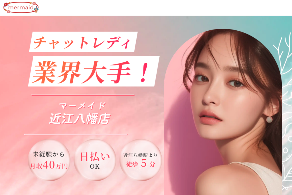 滋賀県・JR近江八幡駅から徒歩5分という通いやすい好立地にある、人気チャットレディ事務所「マーメイド」近江八幡店の募集ページです。